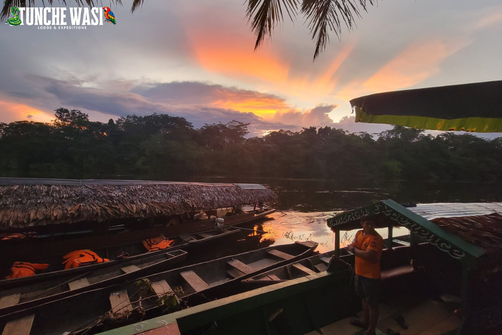 Iniciaremos el día con una excursión en canoa al amanecer, momento ideal para la observación de aves y otros animales en la ribera. Luego haremos una caminata por la selva explorando lagos cercanos (cochas) y buscando primates en su entorno natural.